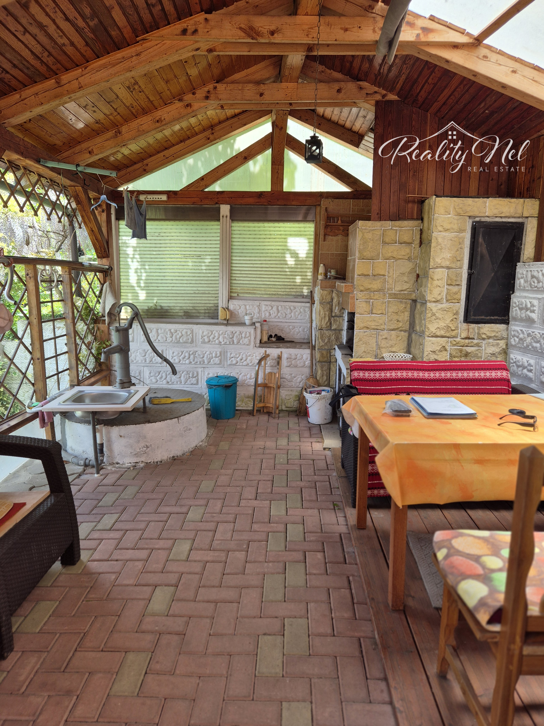 letná kuchynka s krbom a studňou