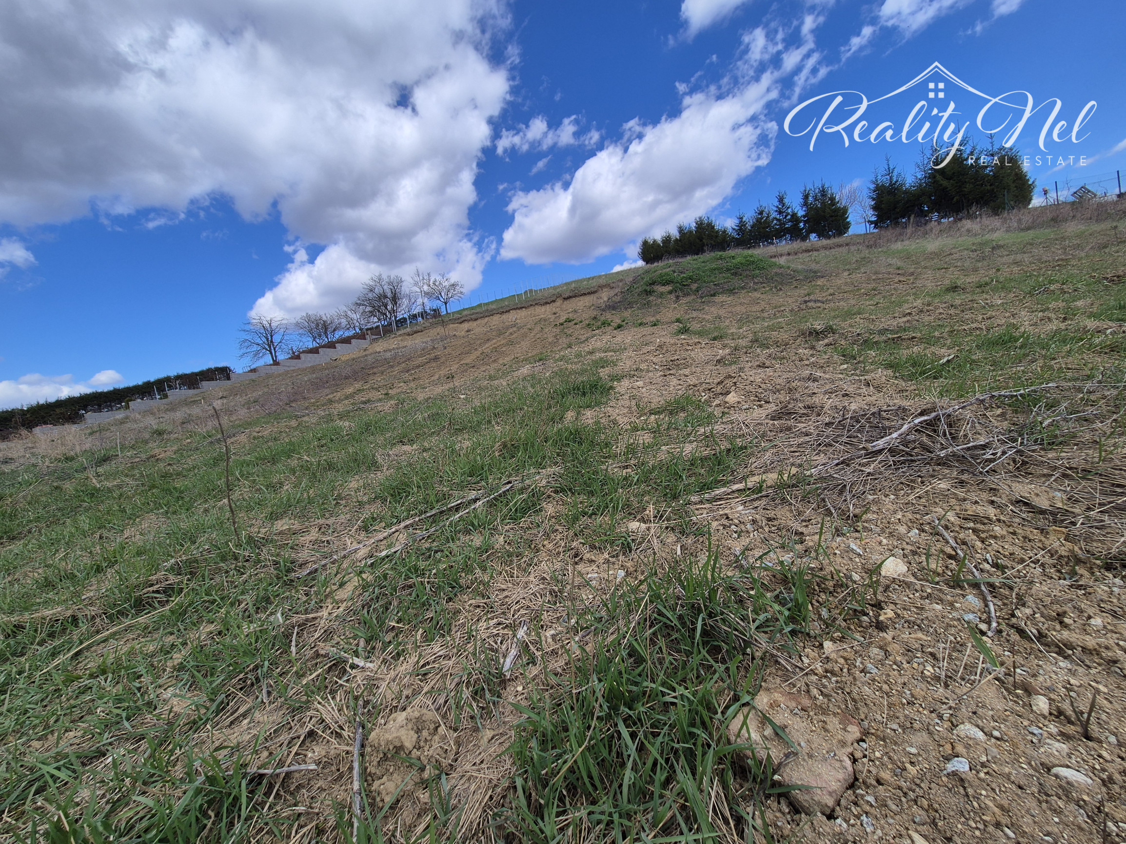 Pozemok je svahovitý s krásnymi výhľadmi na okolitú prírodu.